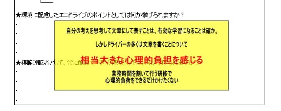 しかしドライバーにかかる心理的負荷と記入しているときの実態をみていると、実際の効果はどうなのか疑問になります。これは学習塾運営で【絶対合格のためのカリキュラム作り】について18年間取組みしてきた経験から出た考えです。